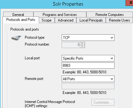 Open TCP port 8983 on the firewall to allow connections to Solr.